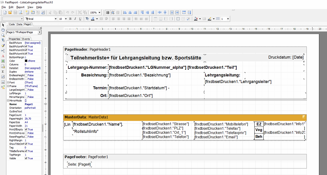 Hierbei gibt es mehrere Möglichkeiten, sich die hinterlegten Vorlagen (im Fastreport-Format) im integrierten Reportgenerator zu öffnen und zu bearbeiten.