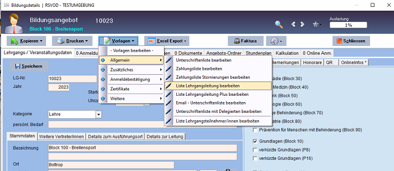 Im Bildungsbereich können Sie die Vorlagen ebenfalls direkt unter dem Button "Vorlagen bearbeiten" auswählen und die Bearbeitung starten.