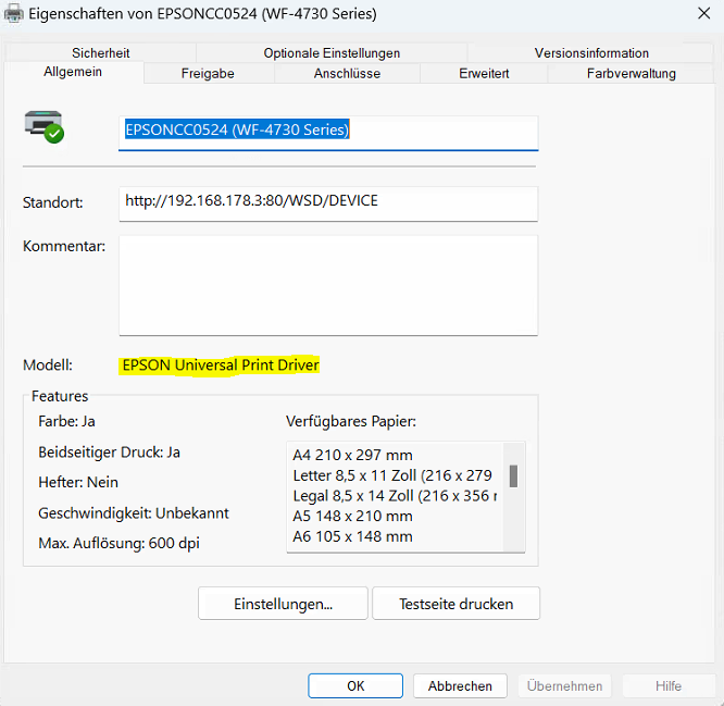 Hier ein Beispiel anhand eines Epson-Druckers: